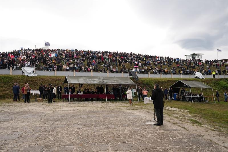 Στον χαιρετισμό του ο κ. Τζιτζικώστας επισήμανε: «Νιώθω βαθιά συγκίνηση, που βρίσκομαι σήμερα εδώ, σ’ έναν τόπο που δίκαια χαρακτηρίζεται ως οι ‘Θερμοπύλες’ της νεότερης ιστορίας της πατρίδας μας. Στον τόπο που ακούστηκε ξανά το ‘Μολών Λαβέ’, από τα χείλη του Αντισυνταγματάρχη Γεώργιου Δουράτσου, διοικητή του οχυρού Ρούπελ, που διαμήνυσε στις ναζιστικές δυνάμεις ότι ‘Τα οχυρά δεν παραδίδονται αλλά καταλαμβάνονται’».