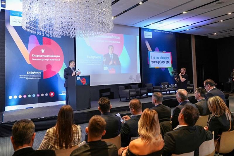 Τα έργα και τις δράσεις στήριξης και ενίσχυσης της επιχειρηματικότητας στην Κεντρική Μακεδονία, αλλά και το σχεδιασμό της διοίκησης της Περιφέρειας Κεντρικής Μακεδονίας για την υποστήριξη του επιχειρείν στη νέα προγραμματική περίοδο 2021 – 2027, παρουσίασε στην εκδήλωση της Περιφέρειας “Επιχειρηματικότητα στην Κεντρική Μακεδονία – Αποτελέσματα και οφέλη από την ολοκλήρωση των δράσεων του ΕΣΠΑ 2014 – 2020 – Σχεδιασμός Δράσεων του ΕΣΠΑ 2021 – 2027”, ο Περιφερειάρχης Απόστολος Τζιτζικώστας.