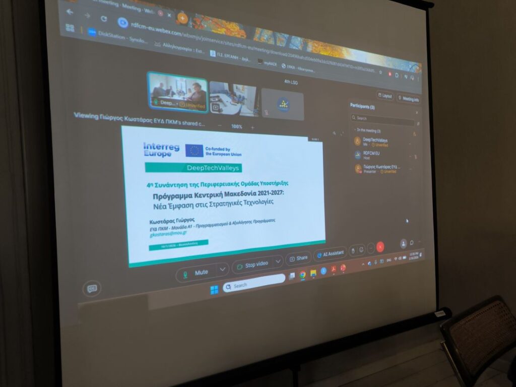 4η συνάντηση της Περιφερειακής Ομάδας Υποστήριξης του έργου “DeepTechValleys” στην Περιφέρεια Κεντρικής Μακεδονίας