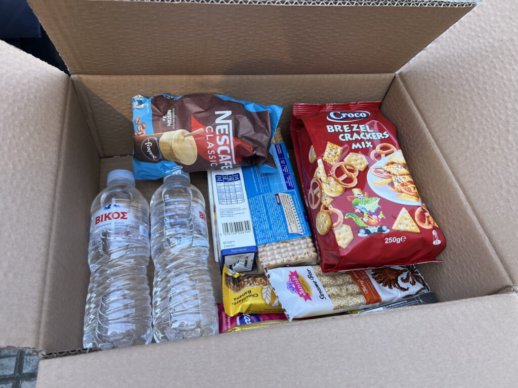 Πρόκειται για ισοθερμικές κουβέρτες αλουμινίου μιας χρήσης και 200 μεγάλα κουτιά (κιτ επιβίωσης) με διάφορα είδη ξηράς τροφής, συσκευασίες νερού, χυμούς, προϊόντα προσωπικής φροντίδας, καθαρισμού και απολύμανσης.