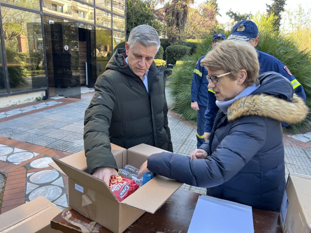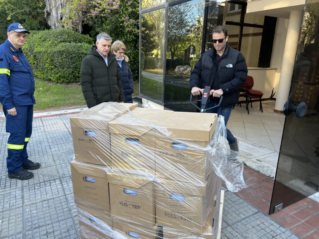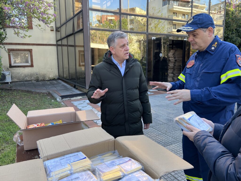 Υλικό και είδη που είναι απαραίτητα σε καταστάσεις έκτακτης ανάγκης για την υποστήριξη των πολιτών, καθώς και των γυναικών και των ανδρών του Πυροσβεστικού Σώματος που επιχειρούν υπό ακραίες συνθήκες για την αντιμετώπιση κρίσεων και φυσικών καταστροφών, παρέδωσε ο Αντιπεριφερειάρχης Θεσσαλονίκης, Κώστας Γιουτίκας, στην Πυροσβεστική Υπηρεσία Θεσσαλονίκης.