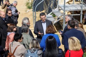 Αυτοψία του Περιφερειάρχη Κεντρικής Μακεδονίας Απόστολου Τζιτζικώστα και της Υπουργού Πολιτισμού Λίνας Μενδώνη στο μνημείο του Τύμβου Καστά στην Αμφίπολη Σερρών (12/4/2023)