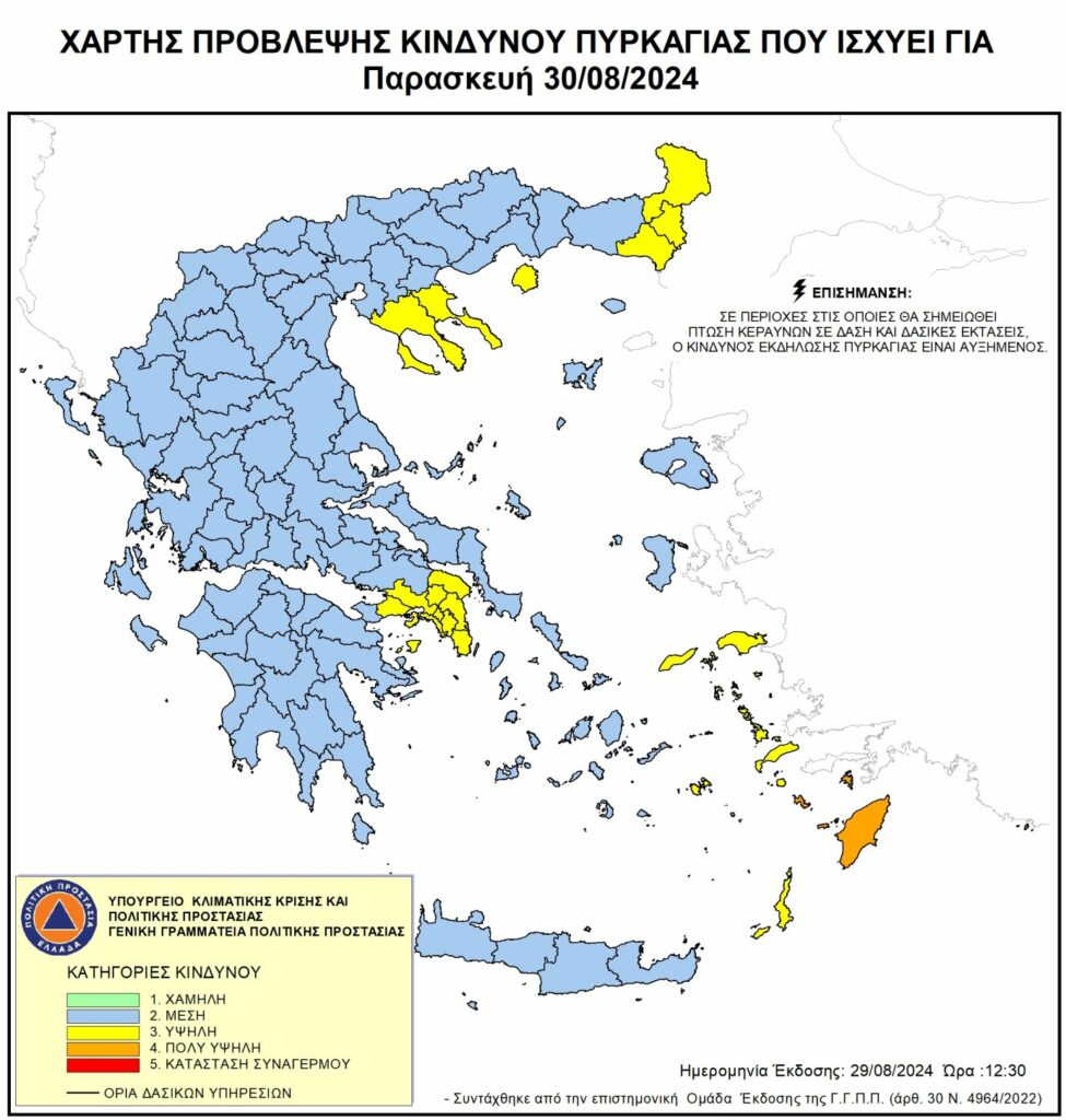 ΧΑΡΤΗΣ ΠΡΟΒΛΕΨΗΣ ΚΙΝΔΥΝΟΥ ΠΥΡΚΑΓΙΑΣ ΠΟΥ ΙΣΧΥΕΙ ΓΙΑ ΤΗΝ ΠΑΡΑΣΚΕΥΗ 30/08/2024