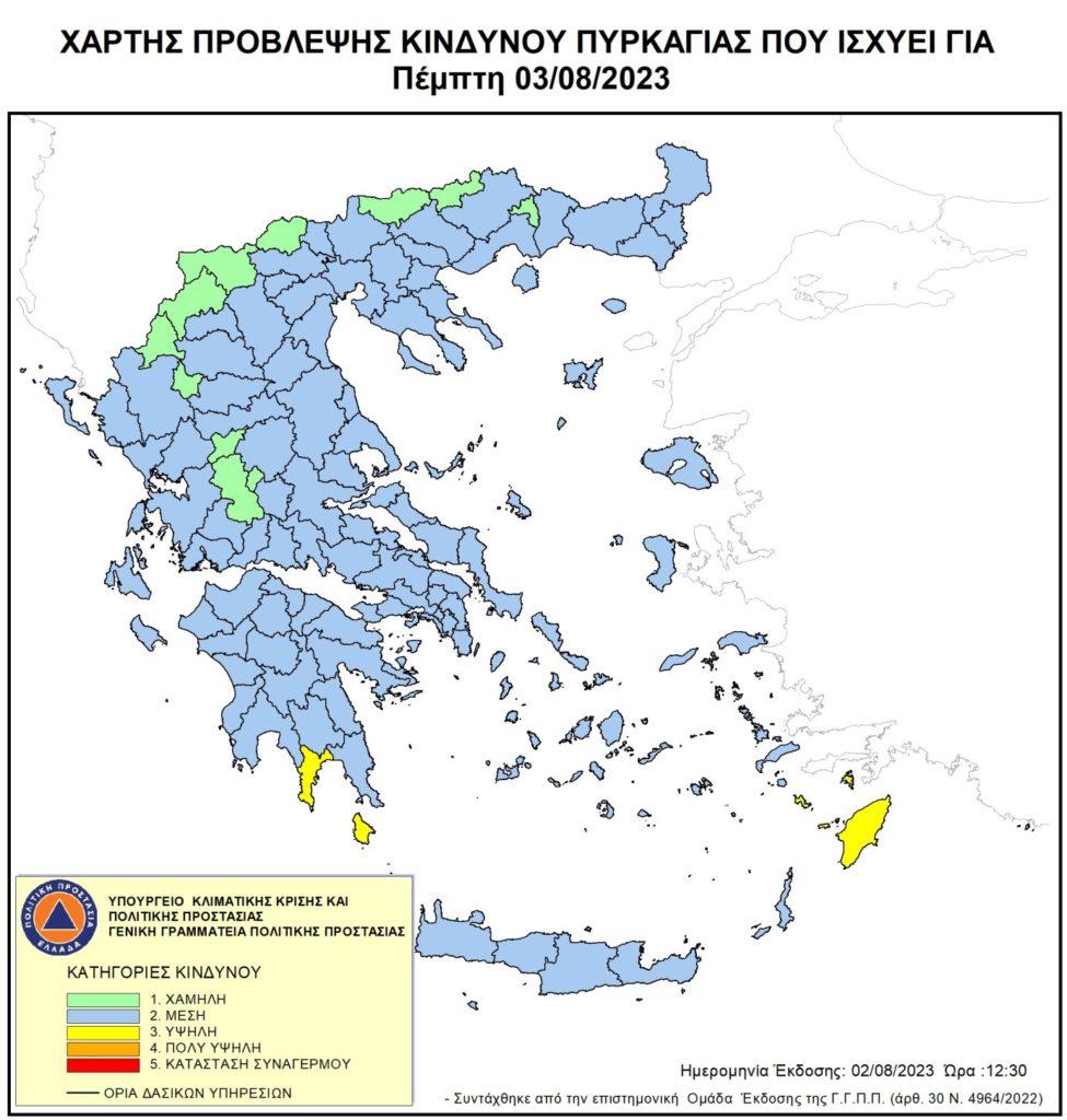 Χάρτης πρόβλεψης κινδύνου πυρκαγιάς (2/8/2023)
