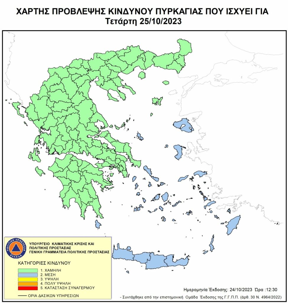 Χάρτης πρόβλεψης κινδύνου πυρκαγιάς (24/10/2023)