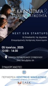 Ημερίδα με θέμα «Καινοτομία και Επιχειρηματικότητα: Next Gen Startups» με τη συνδιοργάνωση της Αντιπεριφέρειας Ψηφιακής Διακυβέρνησης