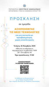 Ημερίδα στην Περιφέρεια Κεντρικής Μακεδονίας με θέμα «Αξιοποιώντας τις νέες τεχνολογίες για μια κοινωνία με προσβασιμότητα, χωρίς αποκλεισμούς»