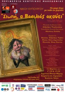 «Σιωπή, ο Βασιλιάς ακούει», μία μικρή όπερα του Νίκου Κυπουργού για παιδιά και μεγάλους, στις 12 Μαρτίου 2023 στο Δημοτικό Θέατρο Θέρμης (7/3/2023)