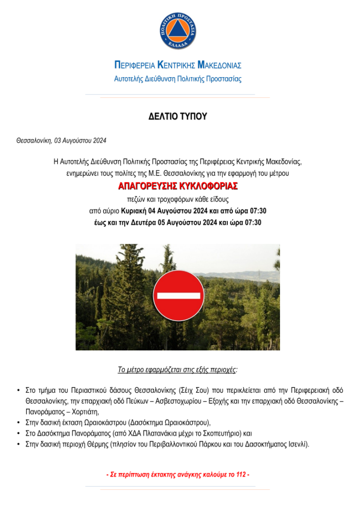 ΑΠΑΓΟΡΕΥΣΗ ΚΥΚΛΟΦΟΡΙΑΣ
