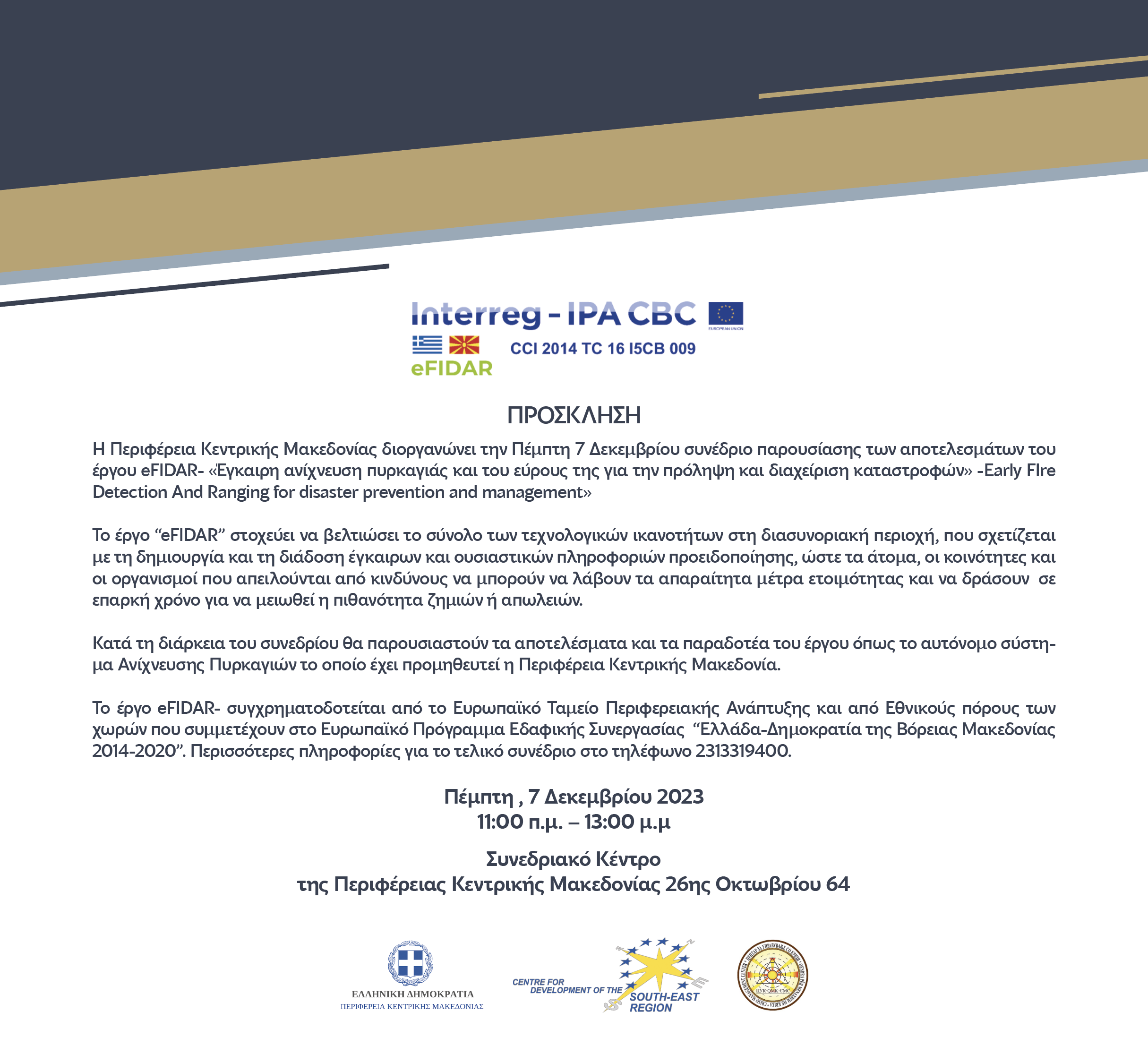 Συνέδριο eFIDAR 7.12.2023 Θεσσαλονίκη πρόσκληση