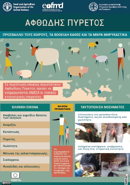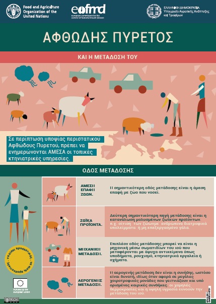 Ο Αφθώδης πυρετός είναι εξαιρετικά μεταδοτικό ιογενές νόσημα που προσβάλλει τα δίχηλα ζώα, (βοοειδή, αιγοπρόβατα, χοίροι, καθώς και ορισμένα άγρια είδη). Χαρακτηρίζεται από υψηλή μεταδοτικότητα και ταχεία εξάπλωση. Μεταδίδεται μέσω της άμεσης επαφής, της έμμεσης επαφής με μολυσμένα αντικείμενα οχήματα, υποδήματα, εξοπλισμό ή μέσω ανθρώπινης δραστηριότητας καθώς και αερογενώς γεγονός που αυξάνει σημαντικά τον κίνδυνο μόλυνσης γειτονικών εκμεταλλεύσεων και της διασποράς της νόσου. Άγρια ζώα και τρωκτικά δύνανται να μεταφέρουν τον ιό από μολυσμένες εκμεταλλεύσεις σε υγιείς.
