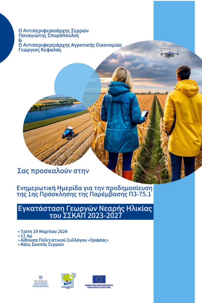Ενημερωτική Ημερίδα Προδημοσίευσης 1ης πρόσκλησης «Εγκατάσταση Γεωργών Νεαρής Ηλικίας» ΣΕΡΡΕΣ 19-3-2024 (7/3/2024)