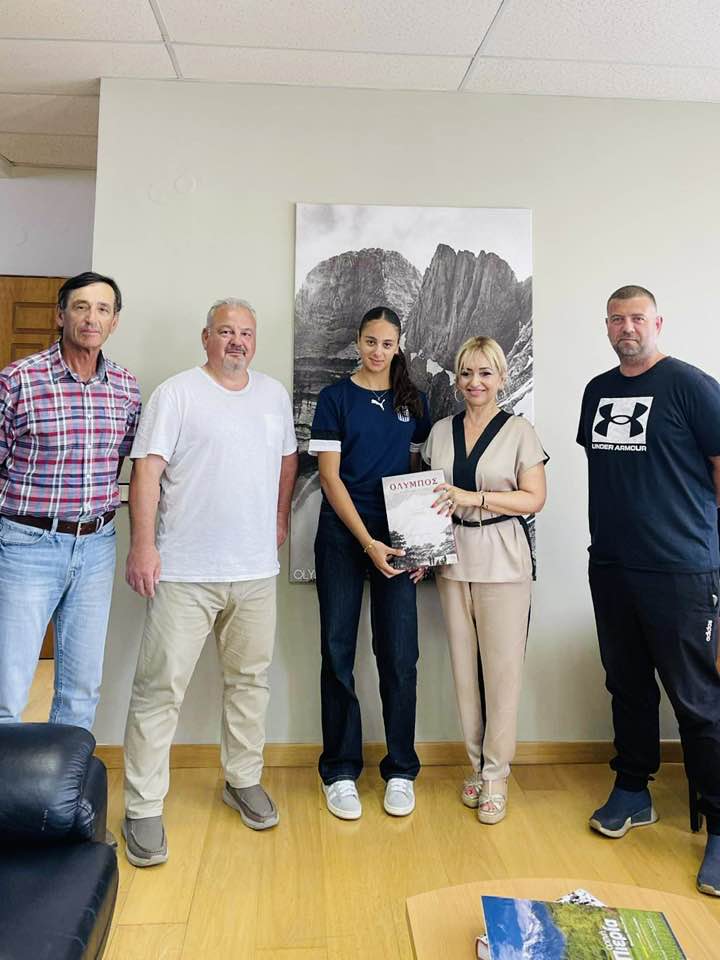 Η συνάντηση ολοκληρώθηκε με ευχές για ακόμη περισσότερες διακρίσεις, καθώς η πορεία της αθλήτριάς μας προδιαγράφεται λαμπρή με πολλές επιτυχίες και μετάλλια.