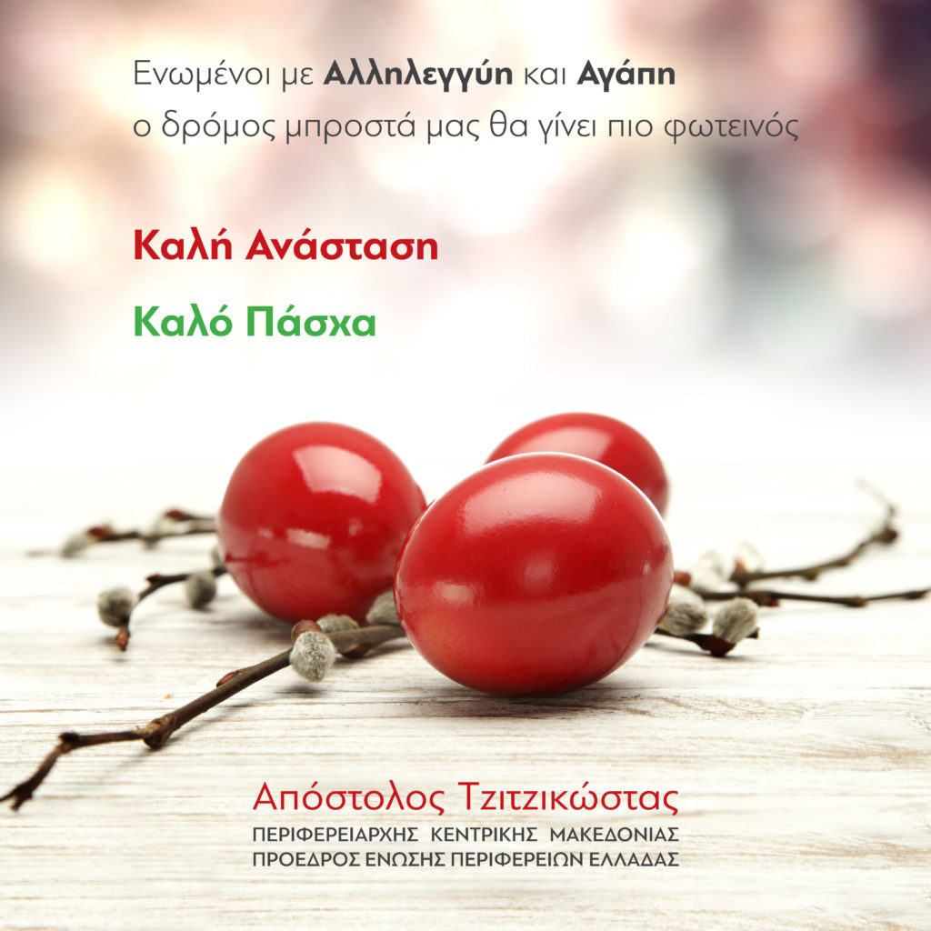 Ευχές του Περιφερειάρχη Κεντρικής Μακεδονίας Απόστολου Τζιτζικώστα για το Πάσχα (13/4/2023)