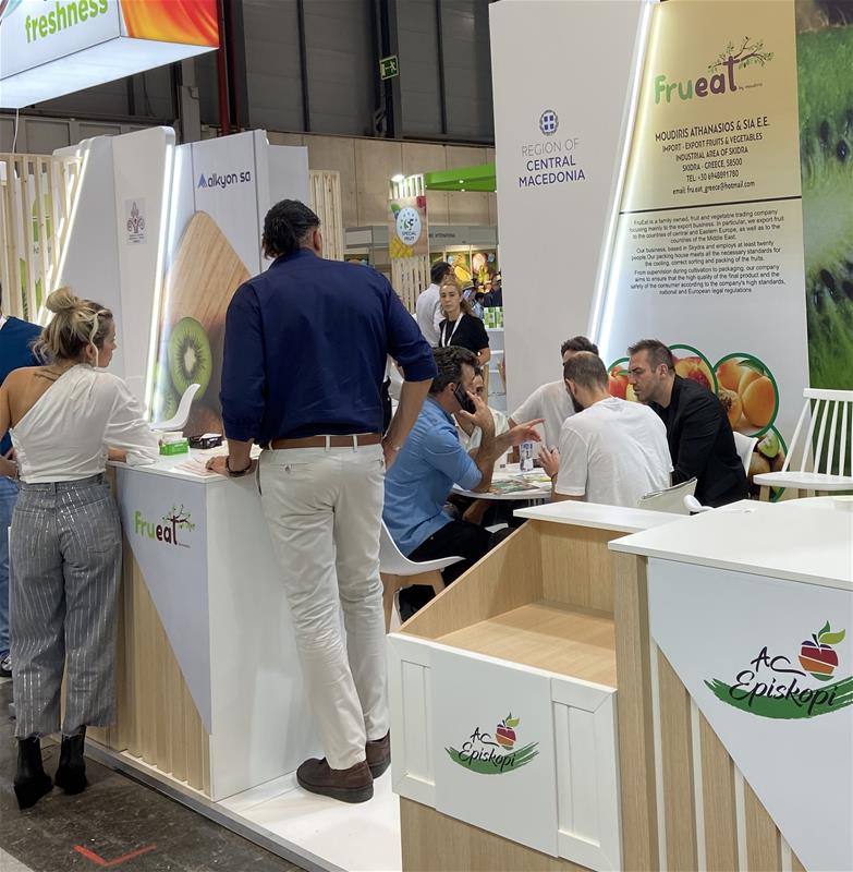 Φέτος όπως και τις προηγούμενες χρονιές η Περιφέρεια Κεντρικής Μακεδονίας εξασφάλισε έναν προνομιακό χώρο στο περίπτερο 10, όπου και φιλοξένησε οκτώ δυναμικές εταιρείες φρούτων σε ένα περίπτερο σύγχρονου design και αισθητικής. Το περίπτερο της Περιφέρειας είχε μεγάλη επισκεψιμότητα και πλήθος επιχειρηματιών και εμπορικών επισκεπτών είχαν την ευκαιρία να γνωρίσουν από κοντά τα εξαιρετικά προϊόντα του τόπου μας, να πραγματοποιήσουν B2B συναντήσεις και να συνάψουν εμπορικές συμφωνίες.   Οι εκθέτες είχαν την ευκαιρία να κάνουν καινούριες επαφές, να ανανεώσουν ήδη υπάρχουσες συνεργασίες, να ενημερωθούν σχετικά με τις εξελίξεις στο χώρο των φρούτων, να δουν από κοντά νέες συσκευασίες, να ενημερωθούν σχετικά με καινοτόμες πρακτικές και να πετύχουν το καλύτερο δυνατό εμπορικό αποτέλεσμα για την εταιρεία τους.