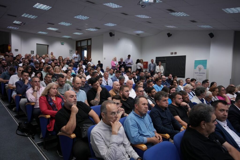 Η πρώτη ενημερωτική εκδήλωση πραγματοποιήθηκε στο Επιμελητήριο Χαλκιδικής, στον Πολύγυρο, παρουσία της Αντιπεριφερειάρχη Χαλκιδικής Κατερίνας Ζωγράφου, του Προέδρου του Επιμελητηρίου και Τομεάρχη Επαγγελματικών Φορέων της Περιφέρειας Γιάννη Κουφίδη, της Περιφερειακής Συμβούλου Σιμέλας Κυριακίδου και των Δημάρχων Πολυγύρου Γιώργου Εμμανουήλ και Νέας Προποντίδας Εμμανουήλ Καρρά.