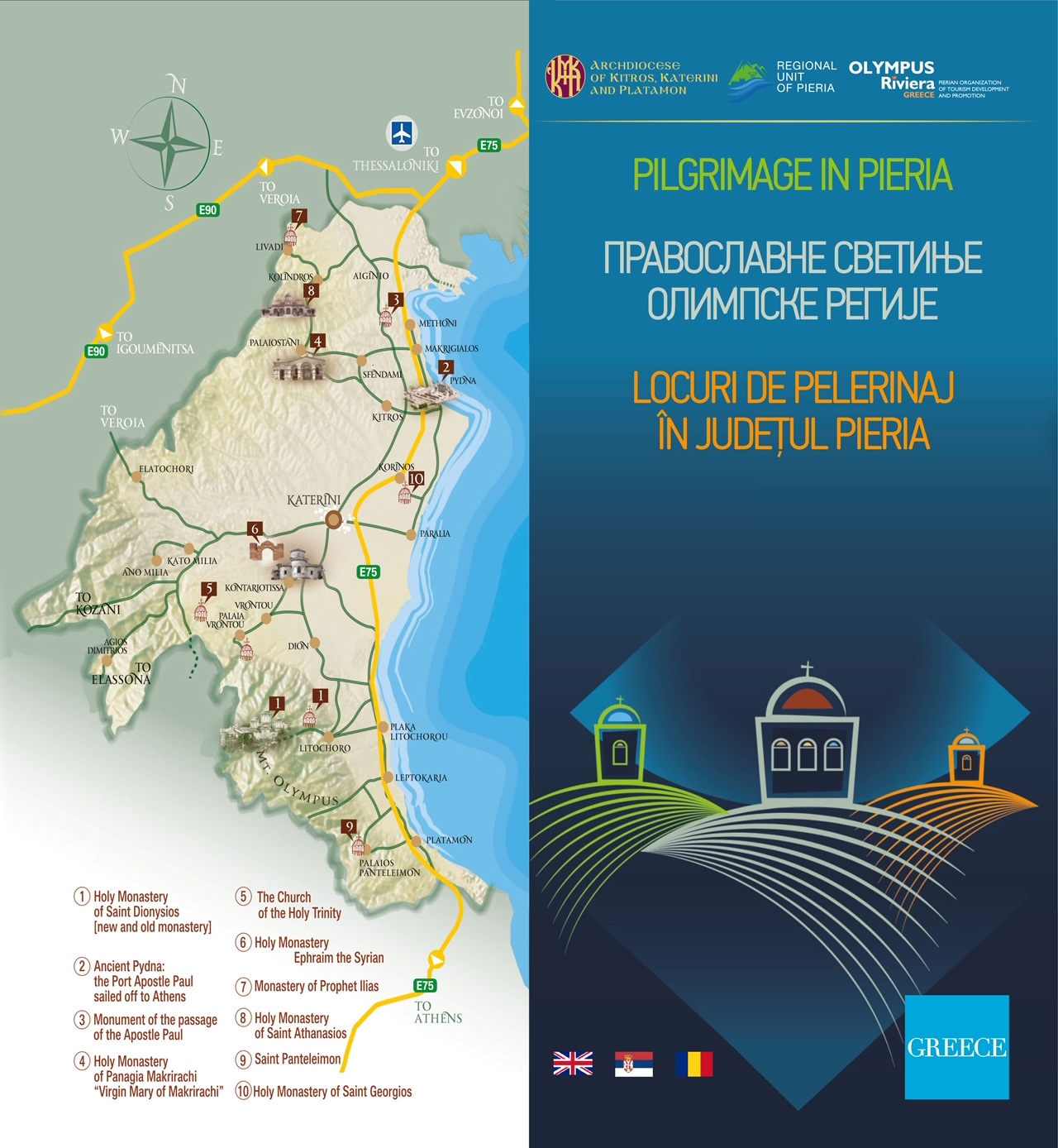 Δεν είναι άλλωστε λίγες οι φορές που οι ομόθρησκοι μας λαοί εξέφρασαν την αναγκαιότητα τα γνωρίσουν ευρύτερα τους τόπους λατρείας της Πιερίας, ζητώντας μάλιστα να έχουν ανάλογη ενημέρωση και σχετικούς οδηγούς για το ποιοι είναι οι χώροι αυτοί και πως είναι προσβάσιμοι. Προς αυτήν την κατεύθυνση ο Σεβασμιώτατος Μητροπολίτης Κίτρους, Κατερίνης και Πλαταμώνος, κ. Γεώργιος, η Αντιπεριφερειάρχης Πιερίας, κα Σοφία Μαυρίδου και ο πρόεδρος του Πιερικού Οργανισμού Τουριστικής Ανάπτυξης και Προβολής (Π.Ο.Τ.Α.Π.), κος Γιώργος Καραλής, αφουγκραζόμενοι το ζητούμενο προχώρησαν στην από κοινού έκδοση ενός πολύγλωσσου τουριστικού οδηγού, ώστε να βοηθήσουν τους επισκέπτες να γνωρίσουν τα Προσκυνήματα της Πιερίας, και να εκκλησιαστούν στους περίλαμπρους Ιερούς Ναούς, τα Μοναστήρια και τα Ξωκλήσια, στις περιοχές όπου ο προσκυνητής θα γίνει κοινωνός του λατρευτικού και Θείου Μεγαλείου, αλλά και θα γοητευτεί από την εκφραστικότητα της φύσης.
