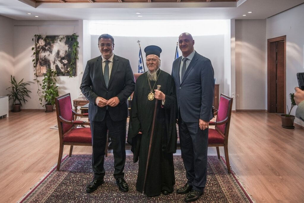 Τον Οικουμενικό Πατριάρχη κ.κ. Βαρθολομαίο υποδέχτηκε στην Αντιπεριφέρεια Κιλκίς ο Περιφερειάρχης Κεντρικής Μακεδονίας Απόστολος Τζιτζικώστας και ο Αντιπεριφερειάρχης Κιλκίς Ανδρέας Βεργίδης, για την τελετή των εγκαινίων της νέας Αίθουσας Πολλαπλών Χρήσεων στο Διοικητήριο του Κιλκίς.