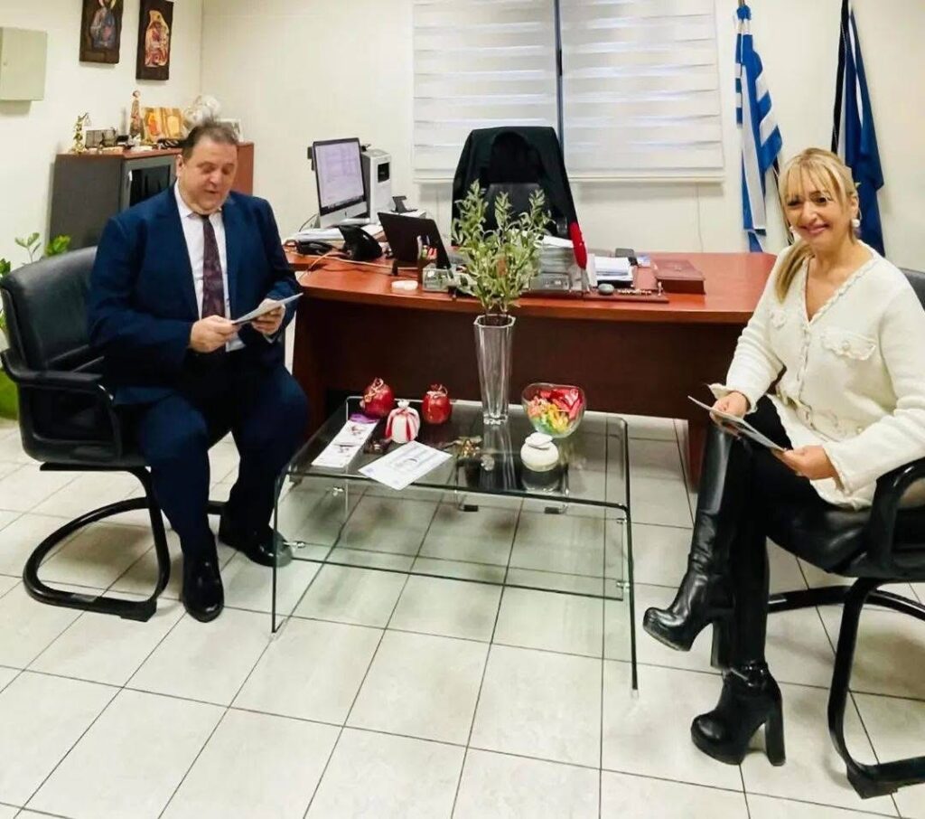 Η Αντιπεριφερειάρχης Πιερίας κα Σοφία Μαυρίδου συναντήθηκε τη Δευτέρα 8 Δεκεμβρίου με τη Διευθύντρια Πρωτοβάθμιας Εκπαίδευσης Ν. Πιερίας, κα Παρθένα Τριανταφυλλίδου και την Τρίτη 9 Δεκεμβρίου τον Διευθυντή Δευτεροβάθμιας Εκπαίδευσης Ν. Πιερίας, κο Γιώργο Μακρή, με αφορμή τη διανομή ενός νέου διαδραστικού εκπαιδευτικού εντύπου για το αρχαίο Δίον σε σχολικές μονάδες της περιοχής.