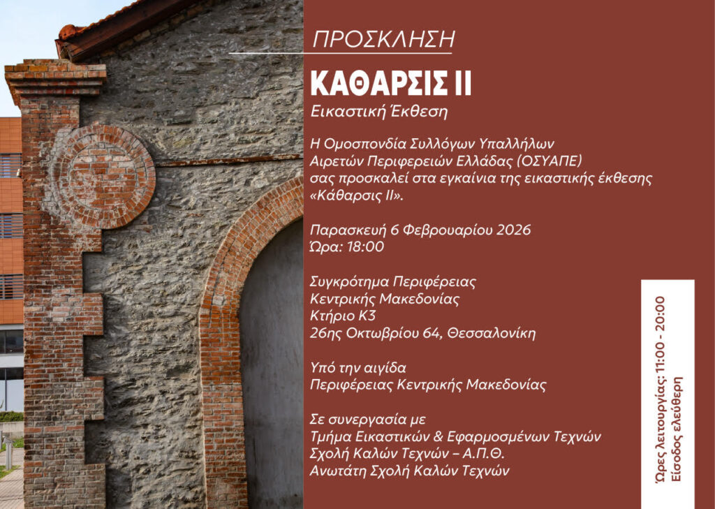 ΠΡΟΣΚΛΗΣΗ ΣΕ ΣΥΝΕΝΤΕΥΞΗ ΤΥΠΟΥ: Εικαστική Έκθεση «Κάθαρσις ΙΙ»