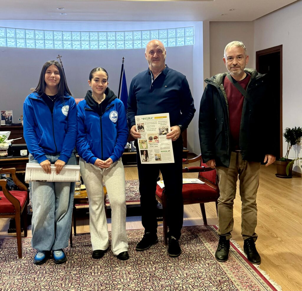Στον Αντιπεριφερειάρχη Ανδρέα Βεργίδη, μαθήτριες, μέλη του Ομίλου Δημοσιογραφίας του 2ου Πειραματικού Γυμνασίου Κιλκίς
