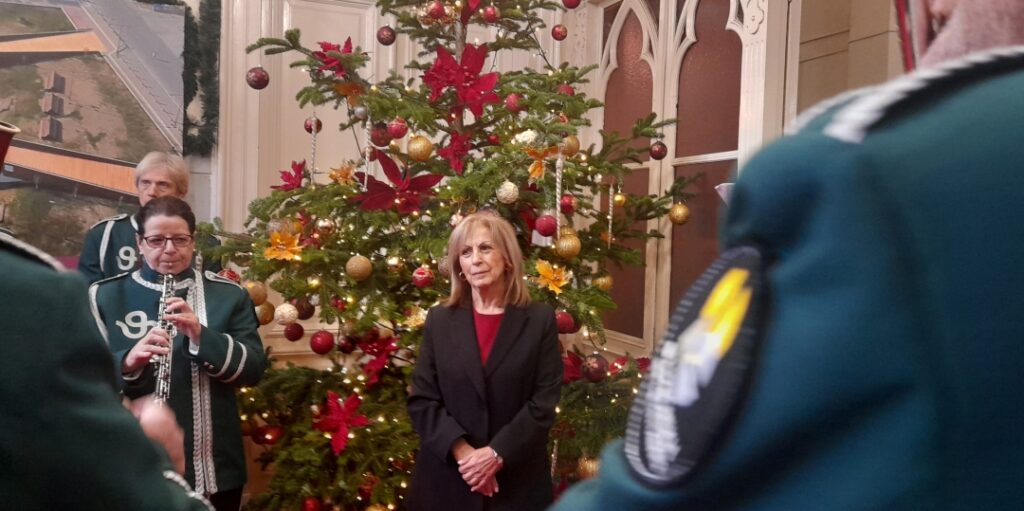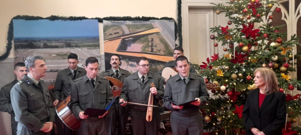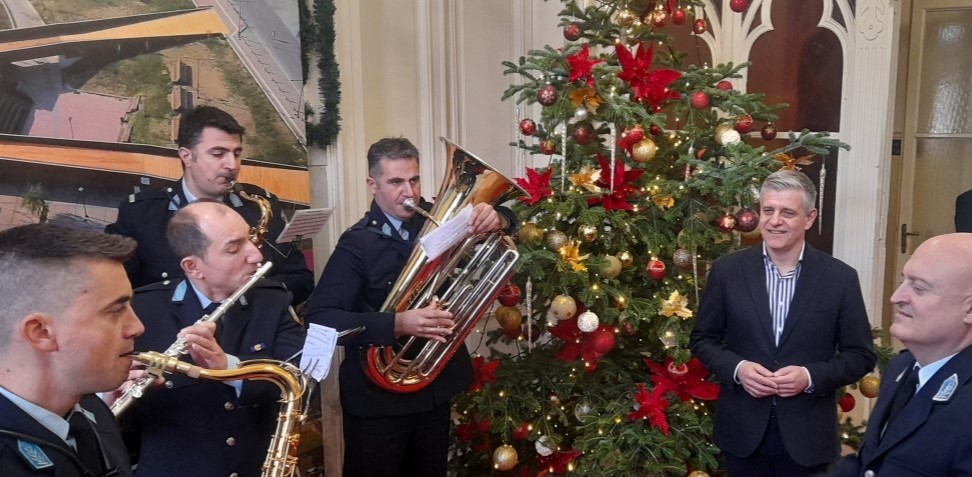 Σήμερα, στο Κτίριο Διοίκησης της Περιφέρειας Κεντρικής Μακεδονίας (βίλα Αλλατίνι), η κυρία Αηδονά άκουσε χριστουγεννιάτικα κάλαντα από τη Φιλαρμονική Ορχήστρα του Δήμου Θεσσαλονίκης, από τη Στρατιωτική Μουσική του Γ΄ Σώματος Στρατού και από τον Σύλλογο Ποντίων Σταυρούπολης “Ακρίτες του Πόντου”. Η Περιφερειάρχης Κεντρικής Μακεδονίας Αθηνά Αηδονά ευχαρίστησε τα μέλη των συλλόγων και των φορέων τόσο για το σπουδαίο έργο που επιτελούν, καθένας στον δικό του τομέα, όσο και γιατί κρατούν ζωντανές τις παραδόσεις. Στη συνέχεια τη σκυτάλη πήρε η μπάντα της Ελληνικής Αστυνομίας, την οποία υποδέχθηκε ο Αντιπεριφερειάρχης Μητροπολιτικής Ενότητας Θεσσαλονίκης Κώστας Γιουτίκας.